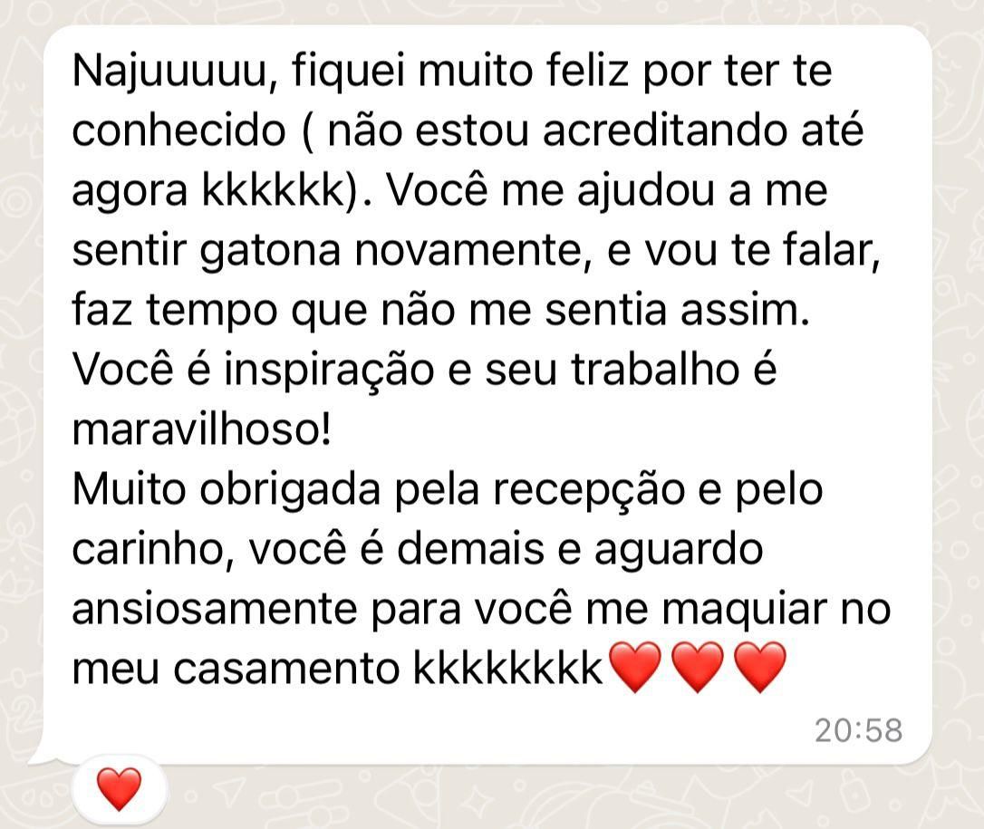 FAÇA PARTE AGORA MESMO DAS MAIS DE 1 MIL ALUNAS QUE JÁ TOMARAM ESTA DECISÃO DE CAMINHAR COMIGO. VENHA SER NSM! NAJU`S SECRETS MAKEUP!